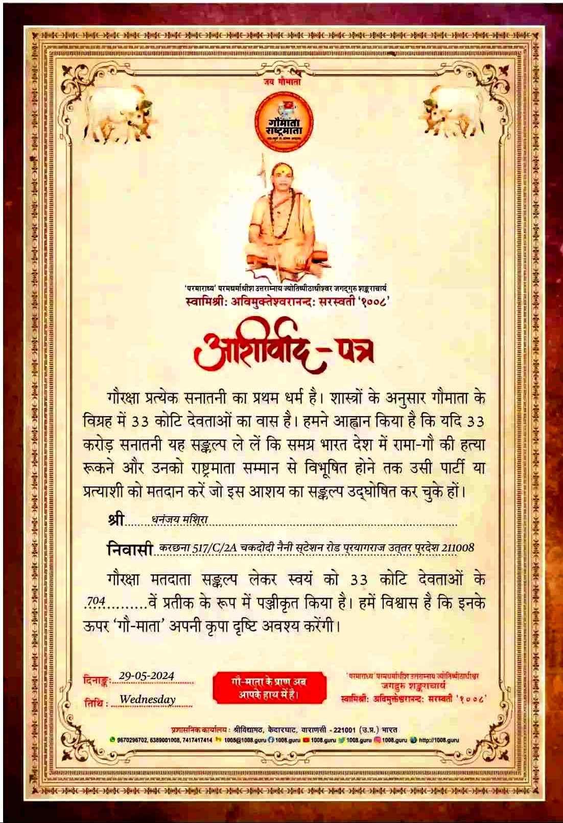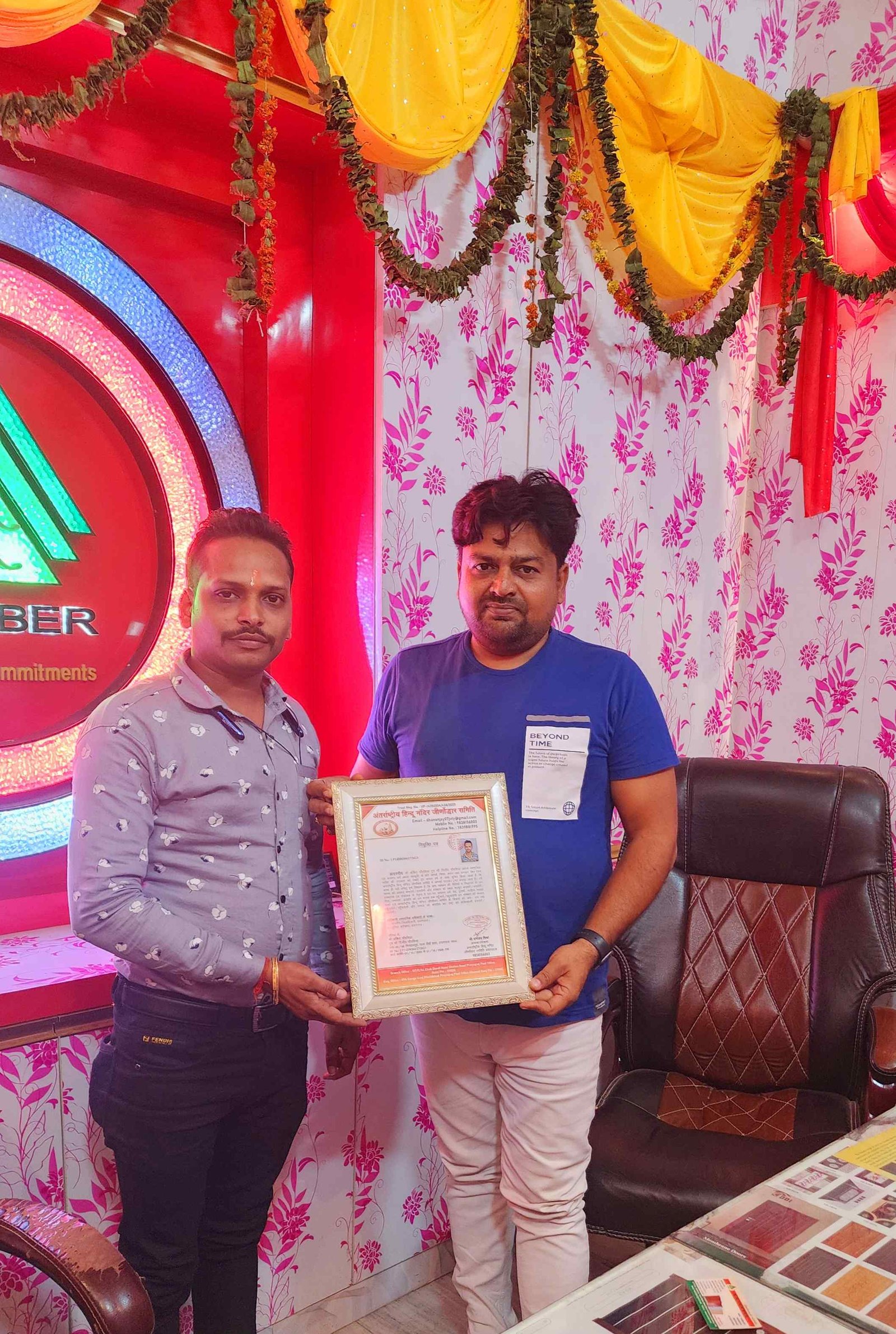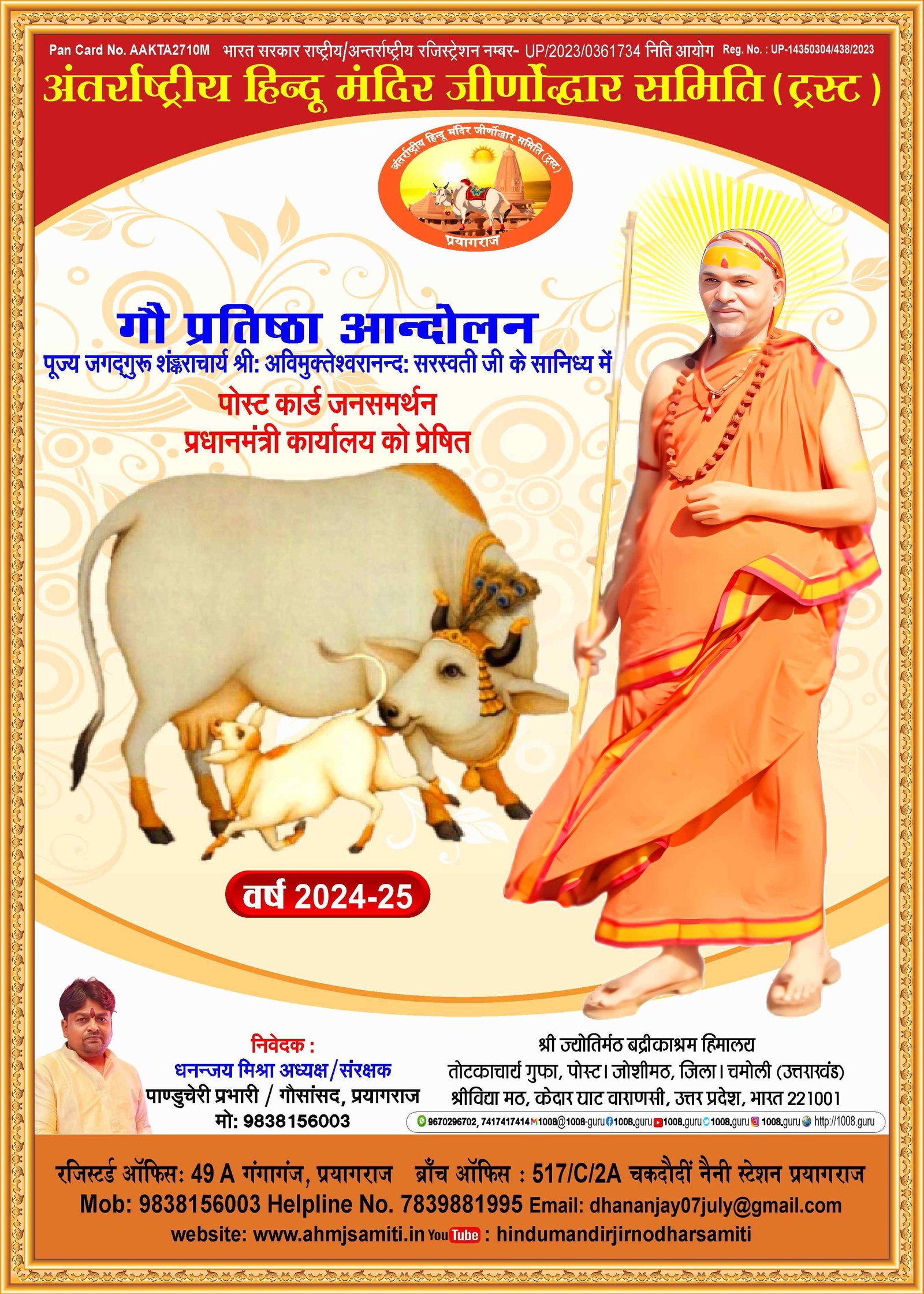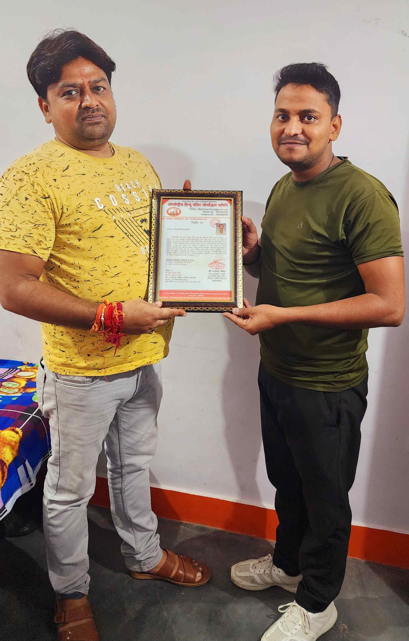 अंतर्राष्ट्रीय हिंदू मंदिर जीणोद्धार समिति में उत्तर प्रदेश मीडिया प्रभारी के रूप में आपका कार्य अत्यंत सराहनीय है संस्था आपके उज्जवल भविष्य की कामना करता है संबद्ध श्री धनंजय मिश्रा राष्ट्रीय अध्यक्ष/ संरक्षक