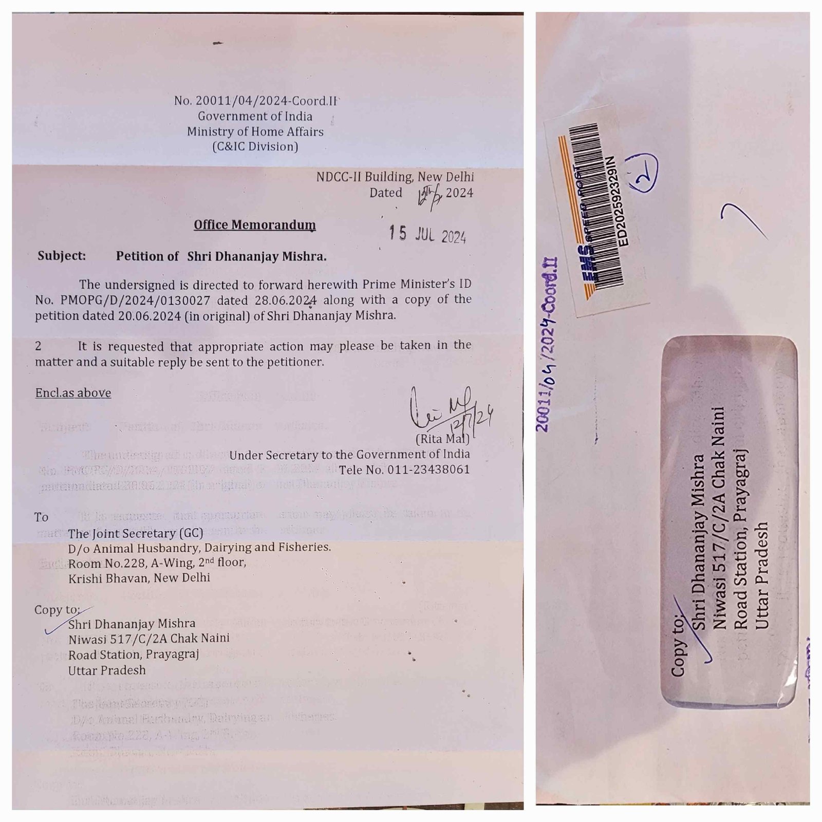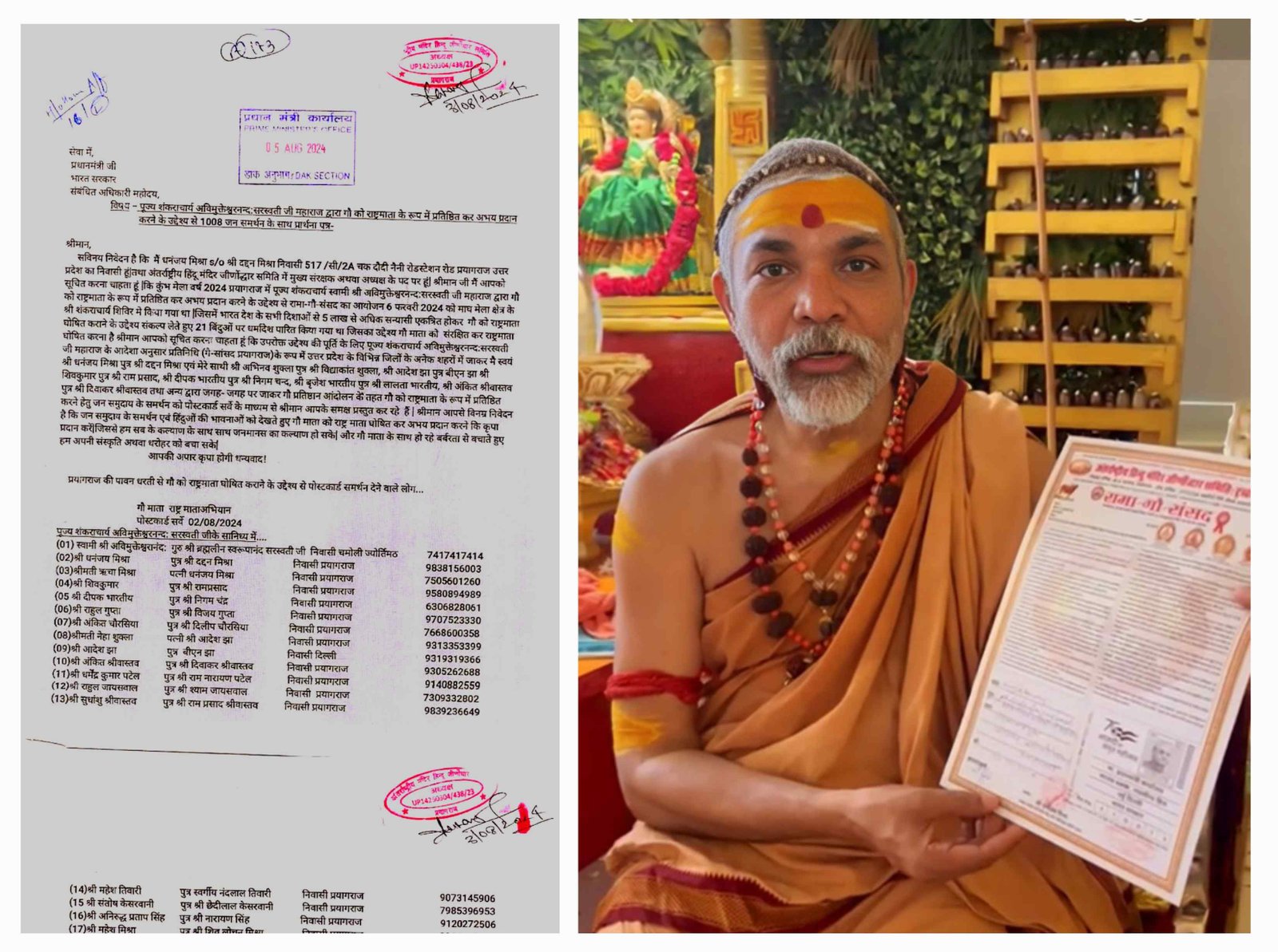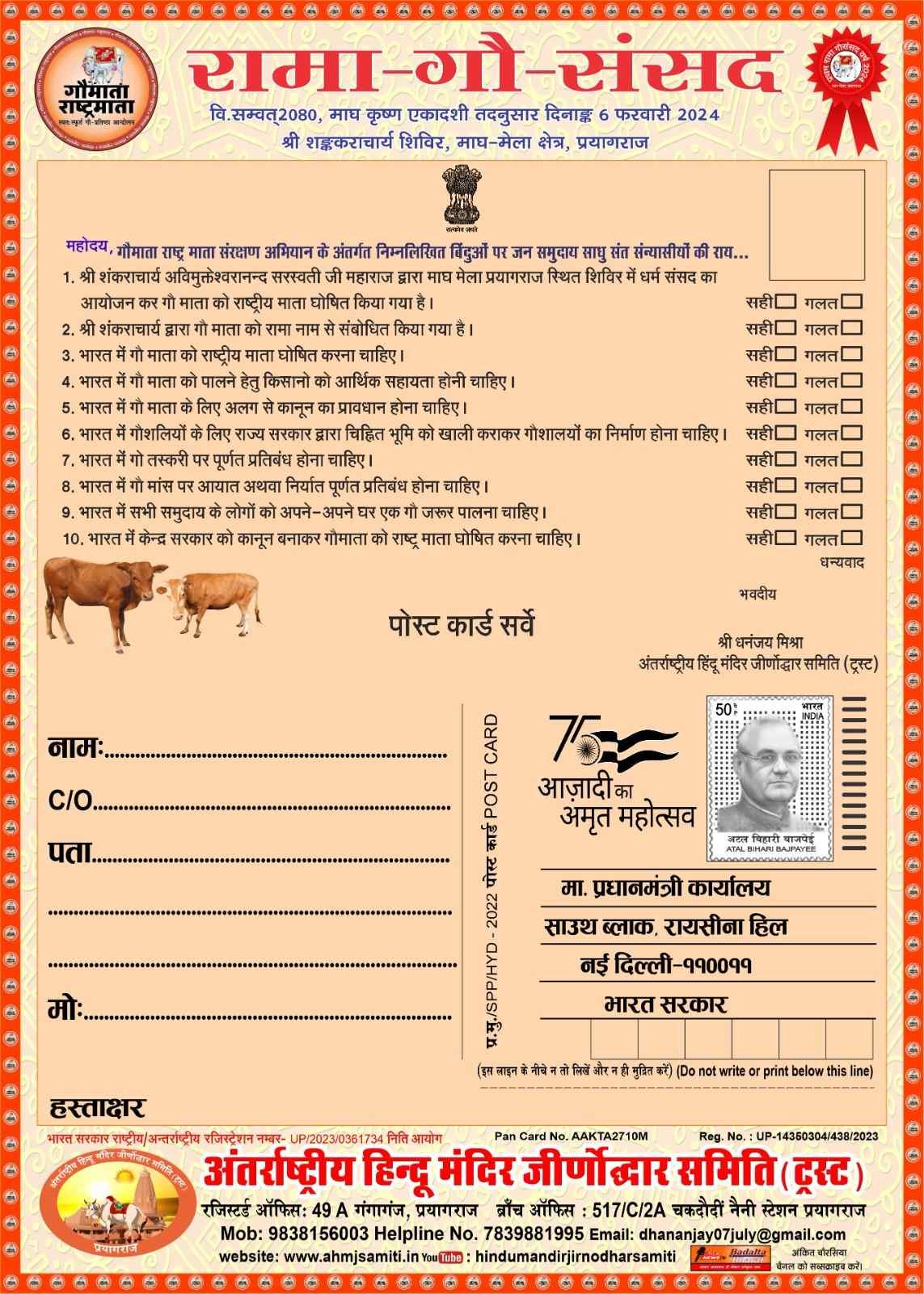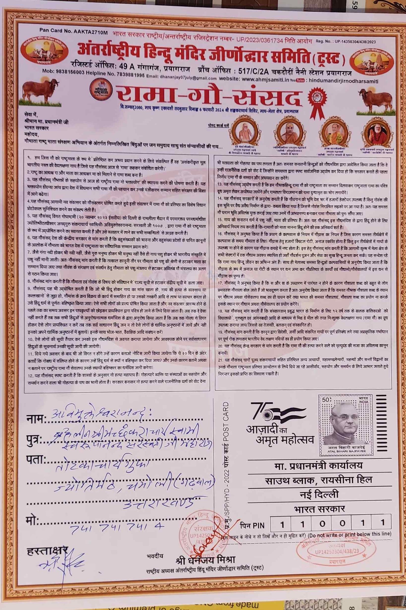 अंतर्राष्ट्रीय हिंदू मंदिर जीर्णोद्धार समिति के राष्ट्रीय अध्यक्ष श्री धनंजय मिश्रा द्वारा मां गंगा सफाई एवं संरक्षण से संबंधित लिखे गये पत्र प्रधानमंत्री जी को मिला मिला और प्रधानमंत्री जी ने तुरंत संबंधित अधिकारी महोदय को कार्रवाई करने के लिए प्रेषित किया