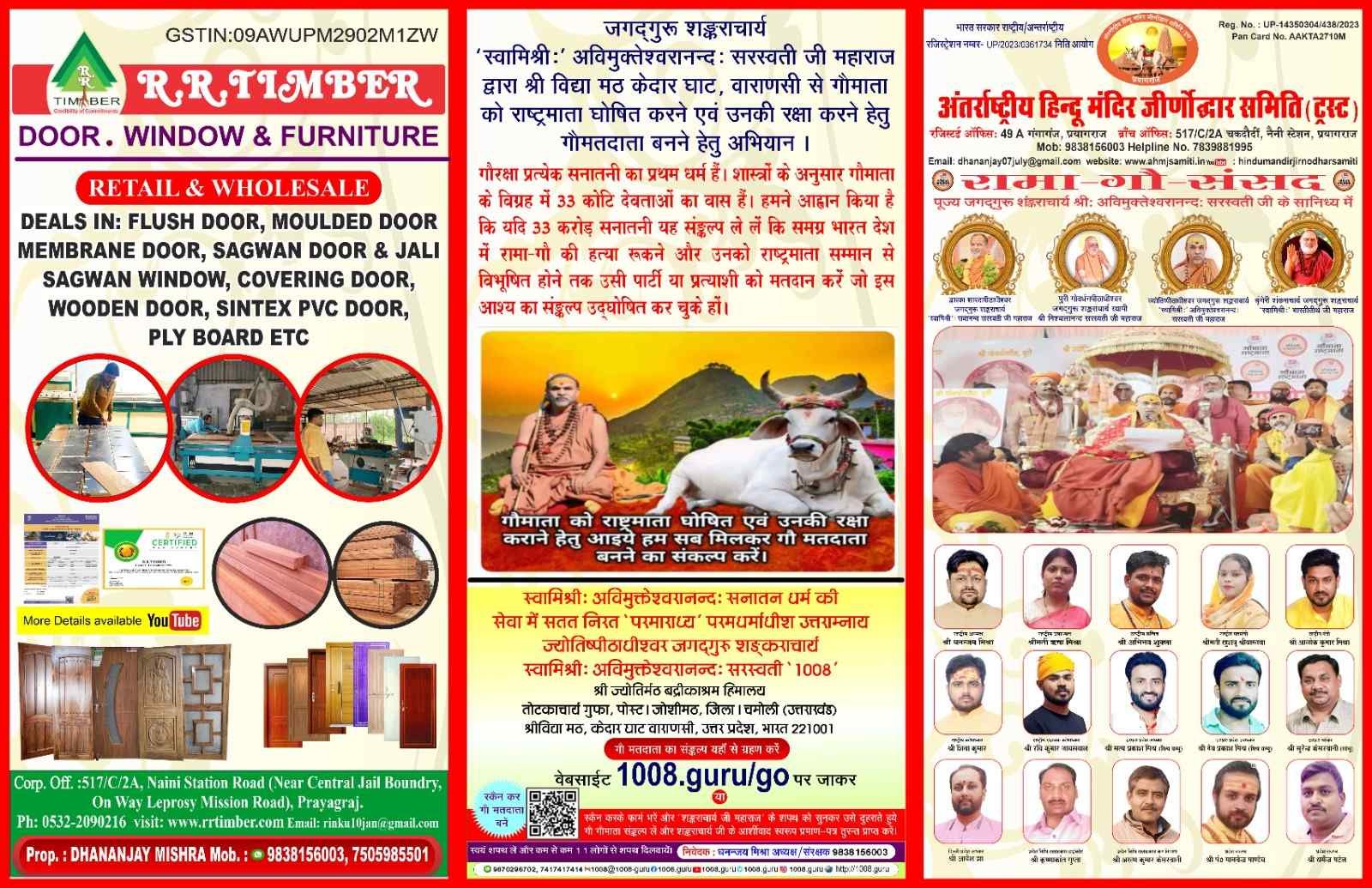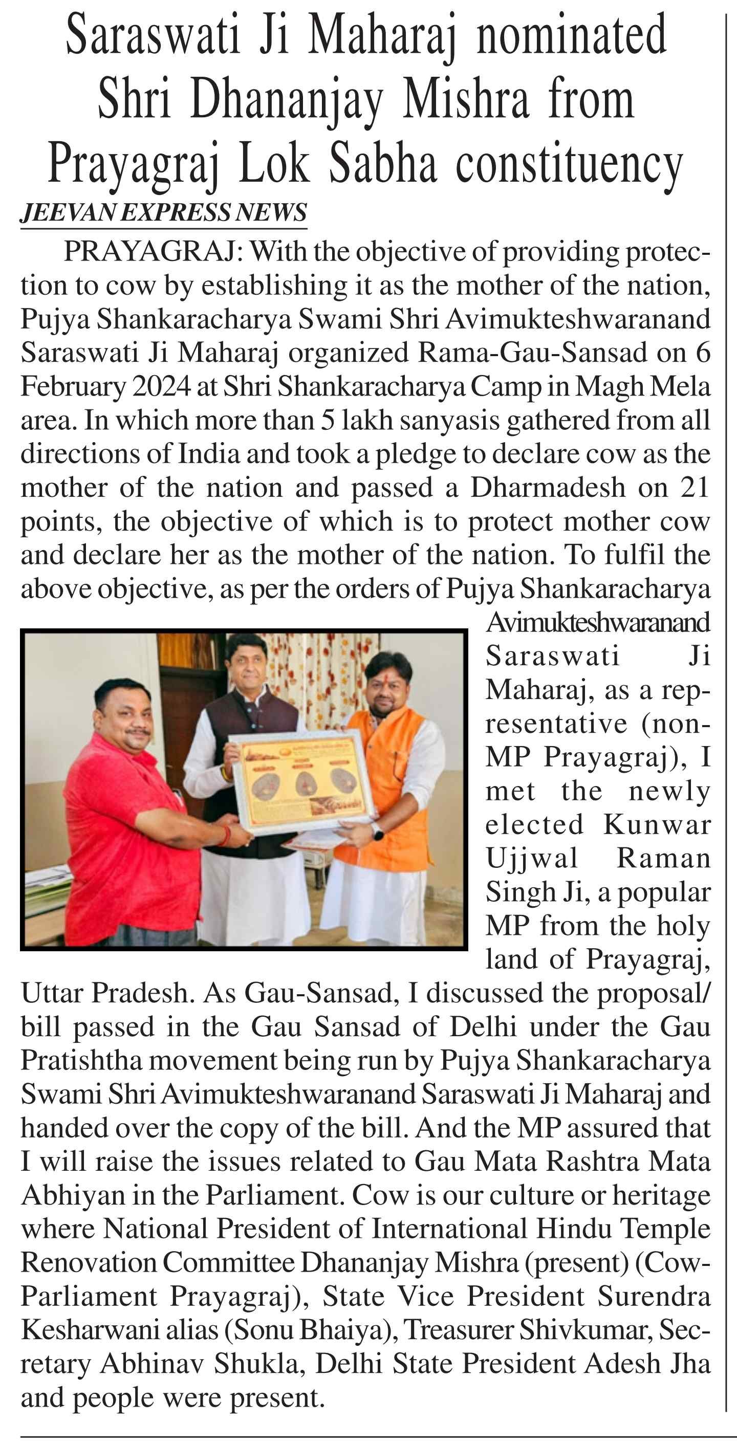 शंकराचार्य एवं अविमुक्तेश्वरानन्द सरस्वती जी महाराज सानिद्य में धर्म संसद का आयोजन किया गया
