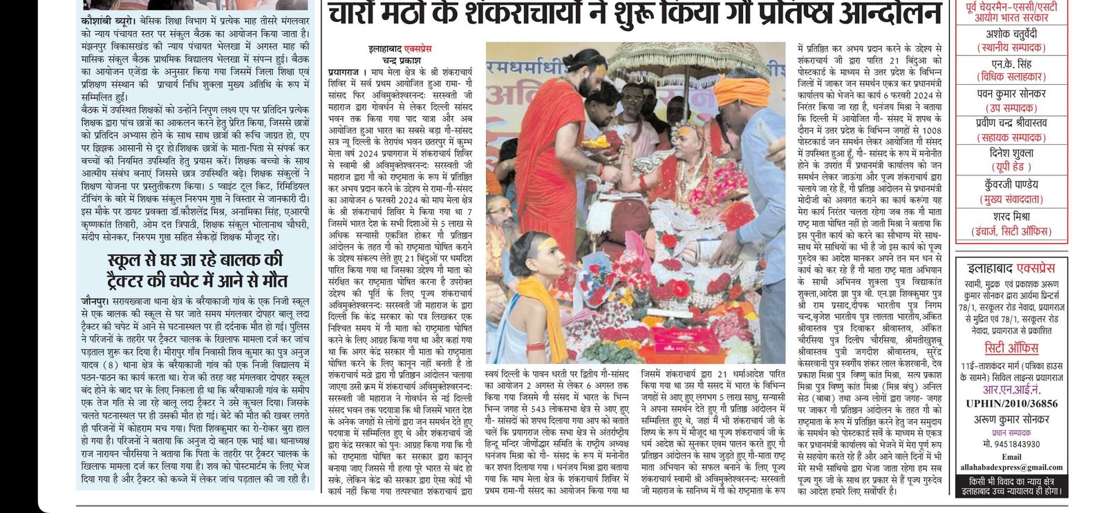 शंकराचार्य एवं मुक्तेश्वर सरस्वती जी महाराज किसान निधि में धर्म संसद का आयोजन किया गया