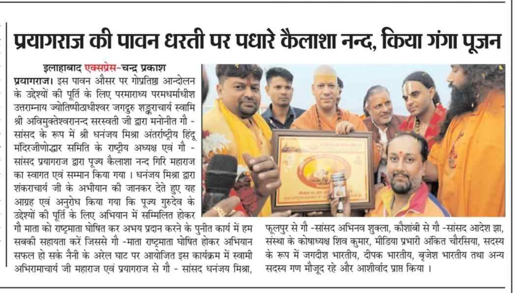 अंतर्राष्ट्रीय हिंदू मंदिर जीणोद्धार समिति द्वारा मां गंगा संरक्षण के लिए प्रयास