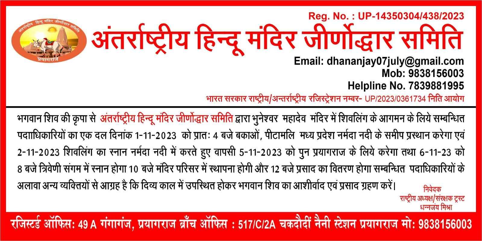 Antarrasshtriya Hindus Mandir Jirnodhar Samiti members has been taking a shivaling go to Narada river side and returned 05/12/2023 to Paryagraj...