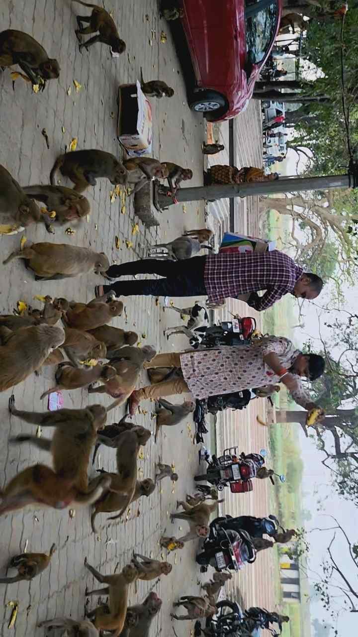President provided of 500 hundred Monkeys foods of banana in Shiva Mandir behalf on Antarrasshtriya Hindus Mandir Jirnodhar Samiti